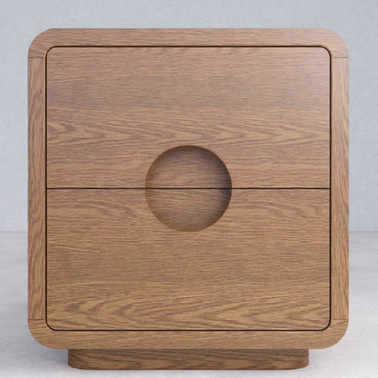 The Rove Nightstand is a refined, minimalist storage piece crafted from solid wood with softly rounded edges and a sculpted circular pull. Designed to bring warmth and calm into modern interiors, its smooth silhouette and seamless drawers blend function with sculptural form — perfect for elevating any bedroom or living space.