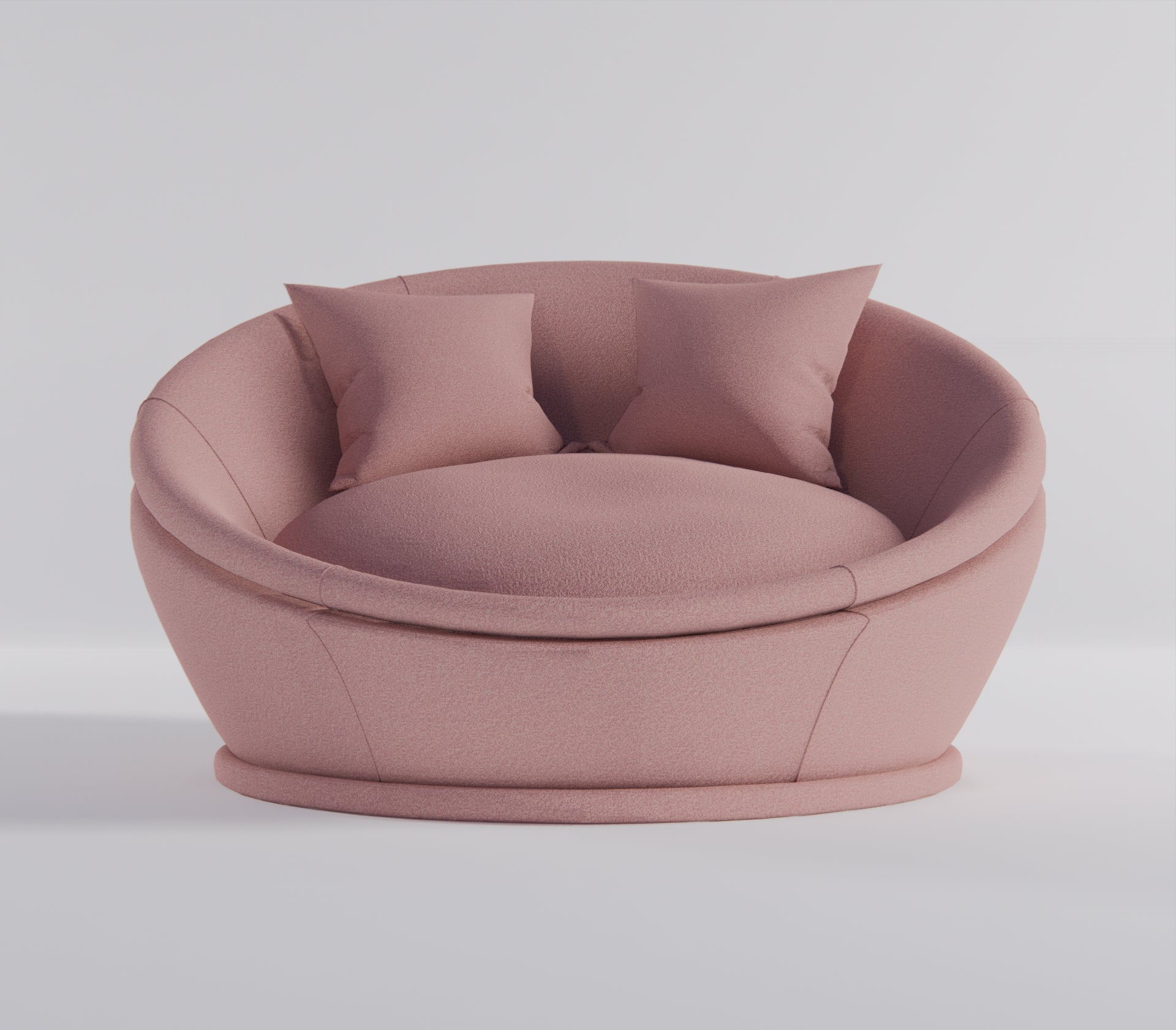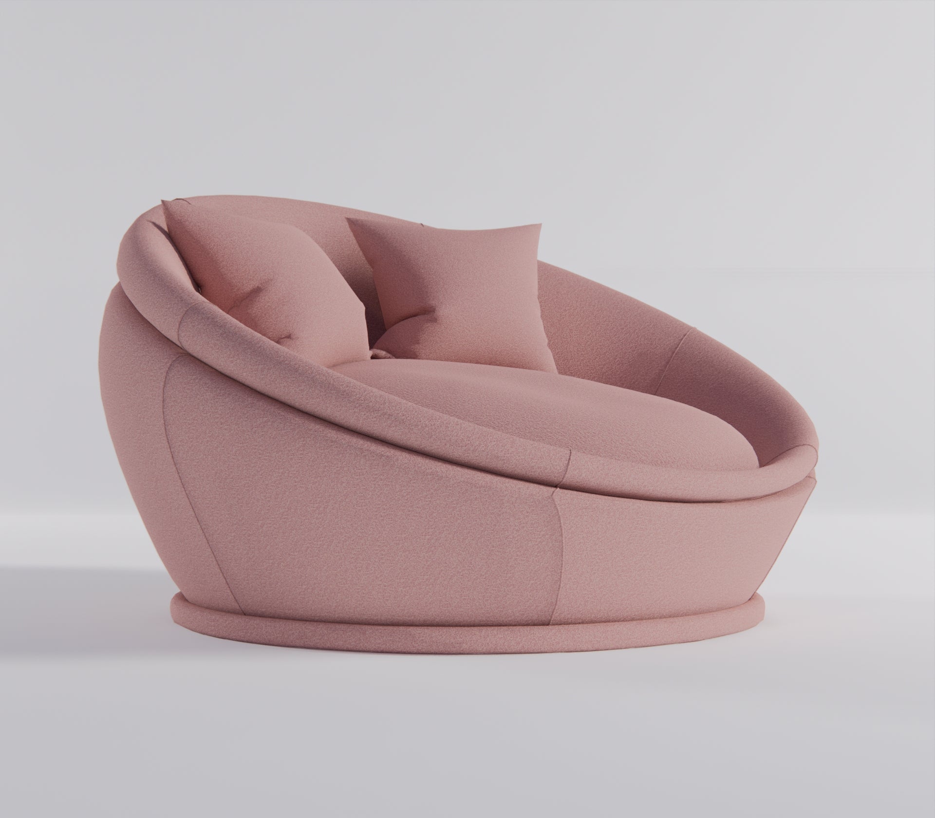 The Dormino Plush Chair is designed as a cocoon of comfort, embracing the body with its generously rounded form and cloud-like cushioning. With a continuous wraparound silhouette and deep, inviting seat, Dormino blurs the line between chair and lounge. Upholstered in a soft, tactile fabric and paired with coordinating cushions, it delivers both visual softness and indulgent comfort, making it a natural focal point in relaxed, design-led interiors.