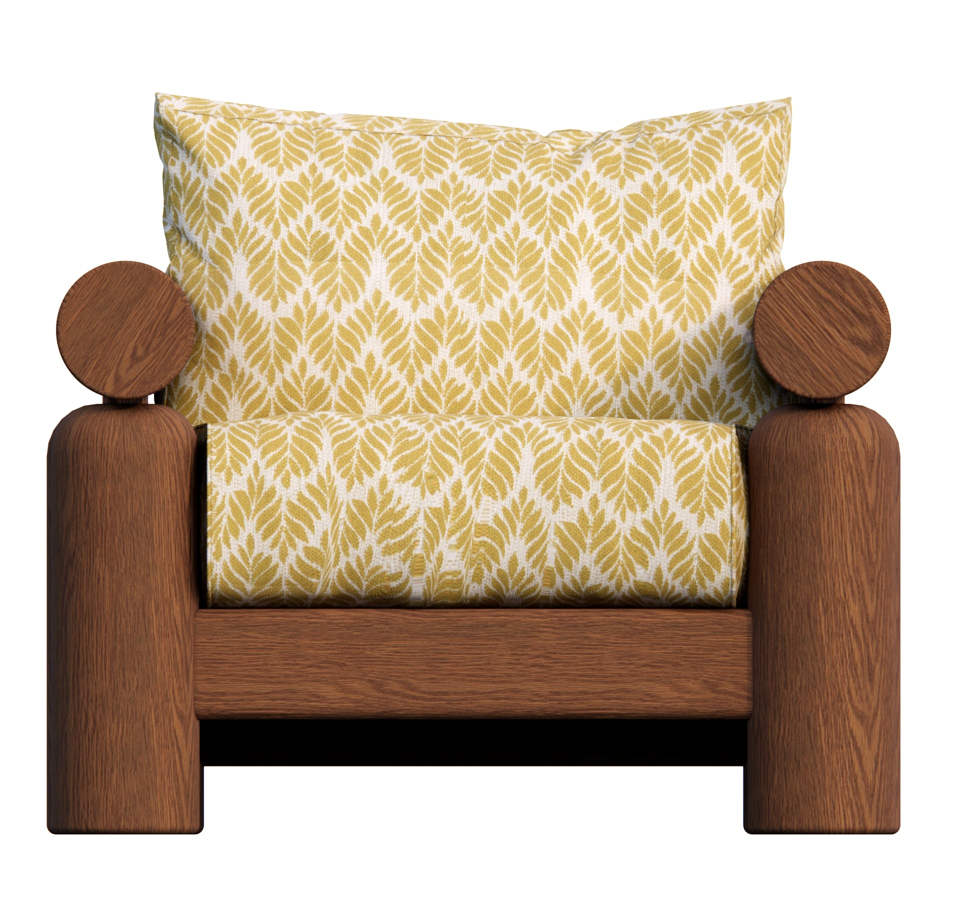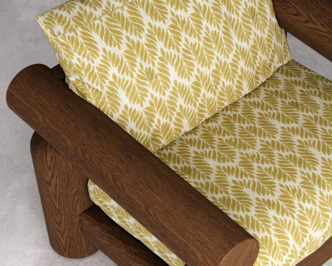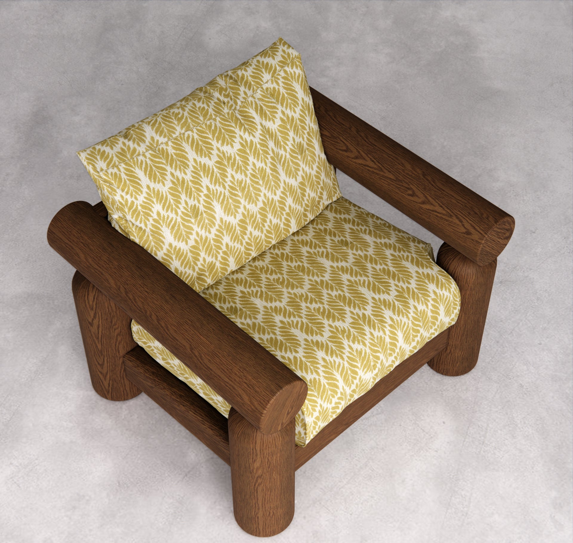 The Maple Lounge Chair is a bold celebration of form, material, and craftsmanship. Built around a solid timber frame with oversized cylindrical elements, Maple feels both sculptural and grounded. Generously cushioned and upholstered in a patterned textile, it creates a striking contrast against the warm wood structure. Designed for relaxed lounging rather than formal sitting, Maple brings personality, comfort, and unmistakable presence to any space.