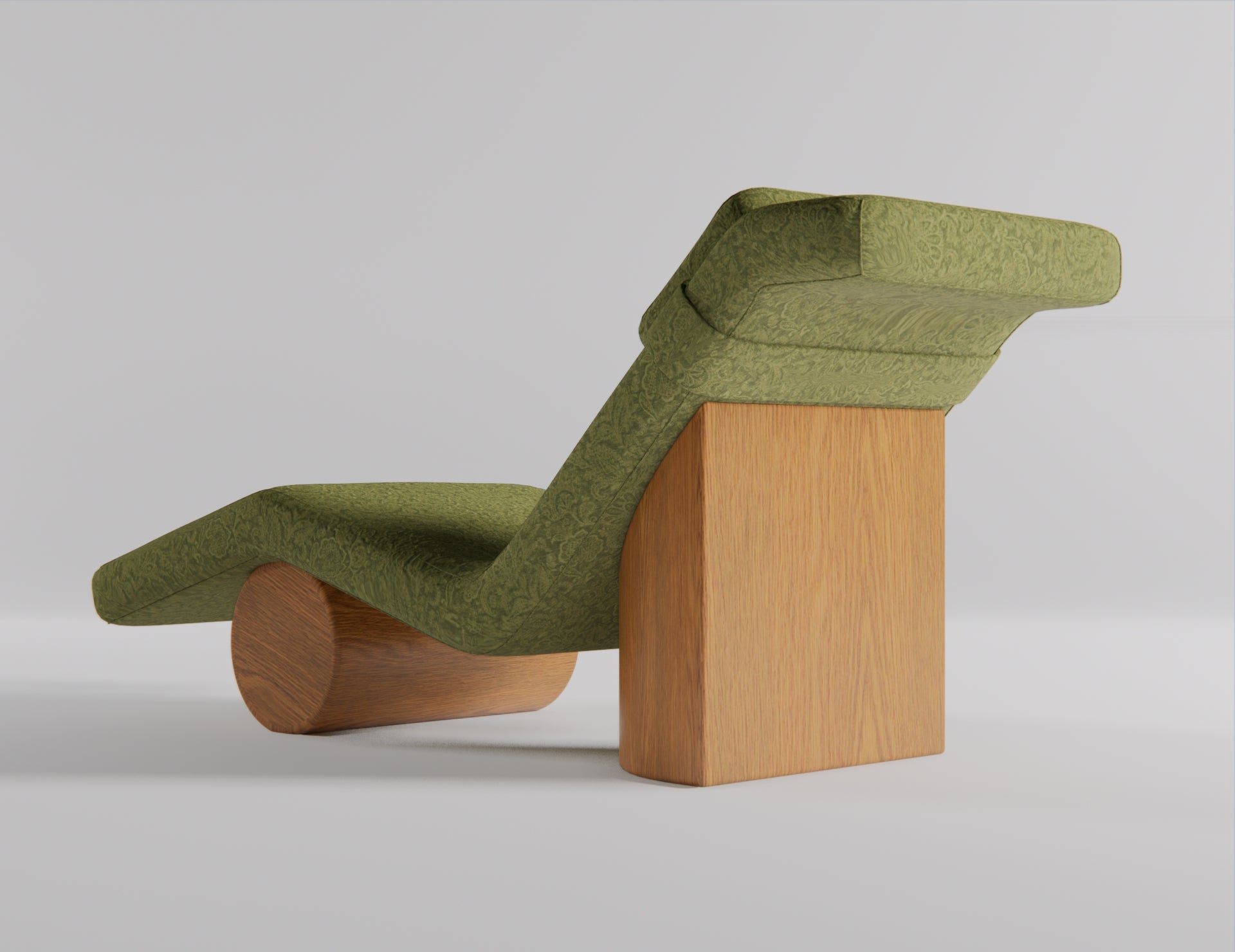 The Solange Chaise Lounge is a sculptural expression of modern relaxation, where fluid form meets grounded craftsmanship. Defined by its gently contoured silhouette and balanced proportions, Solange appears to float effortlessly atop its solid wooden base. Upholstered in a richly textured fabric and paired with a supportive integrated headrest, this chaise invites unhurried lounging while doubling as a striking design object. Understated yet distinctive, Solange brings a sense of calm luxury to any interior.
